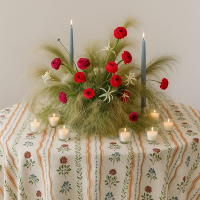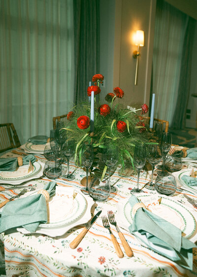 Confident use of pattern and specialty linens for layered, editorial tablescapes